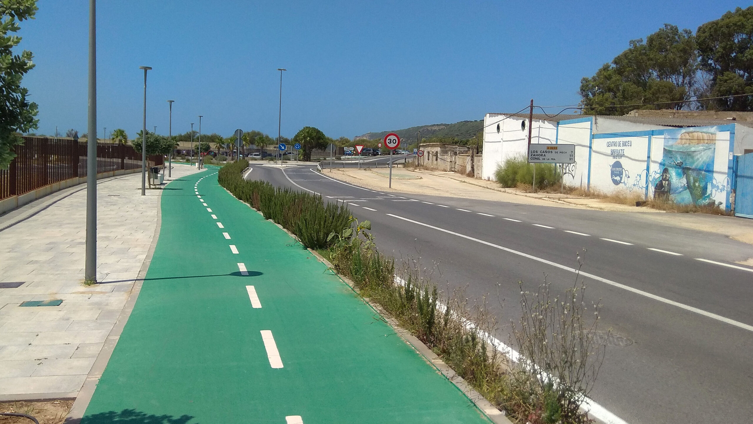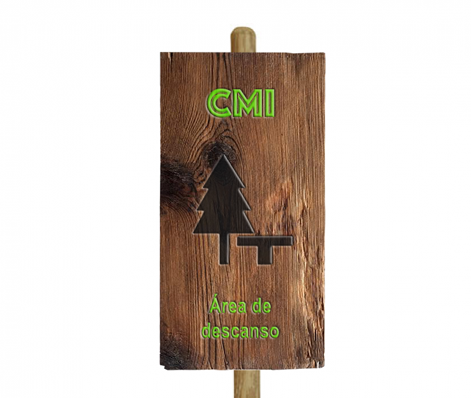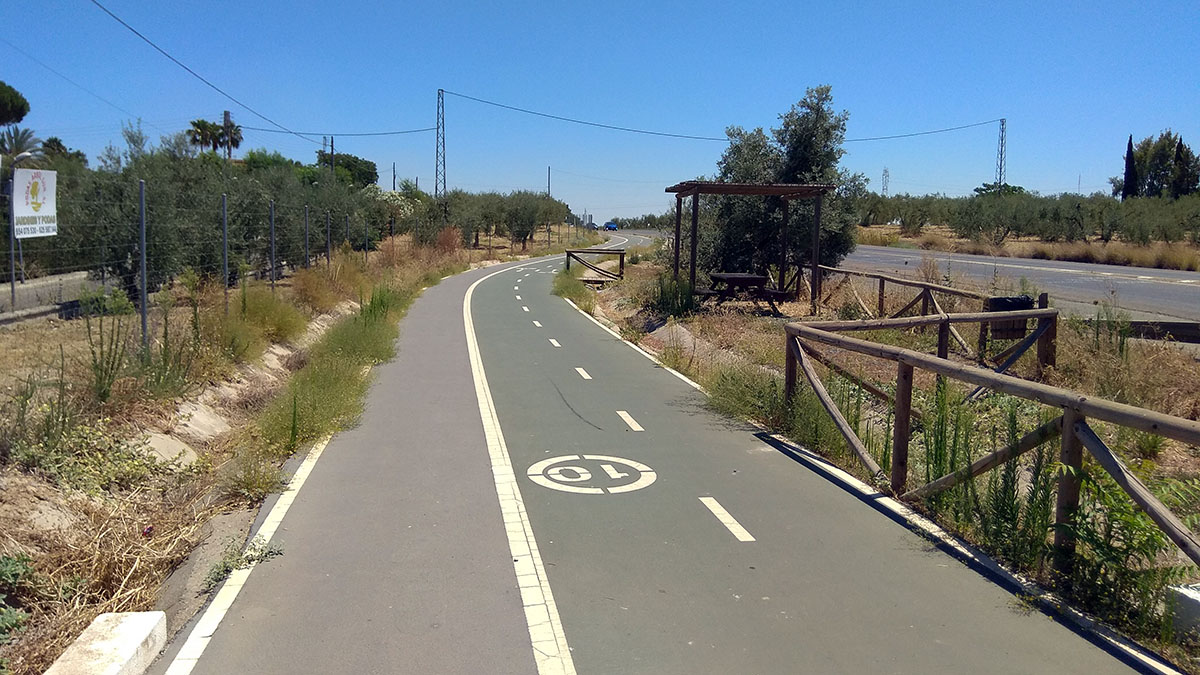 CMI segregado de la carretera, con carril peatonal y ciclista, con zona de descanso anexa